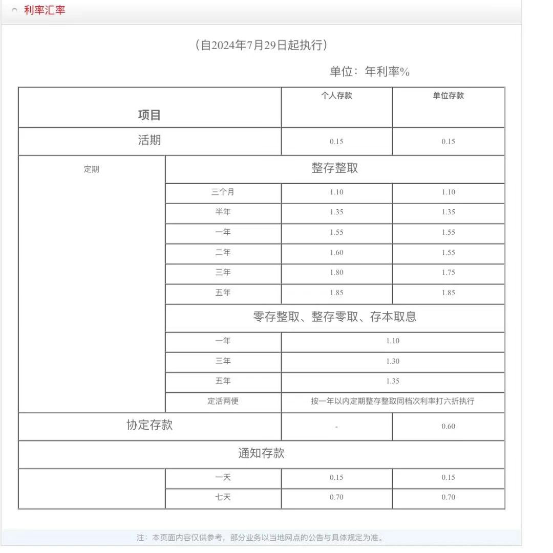 各家银行定期存款利率具体变化如下: