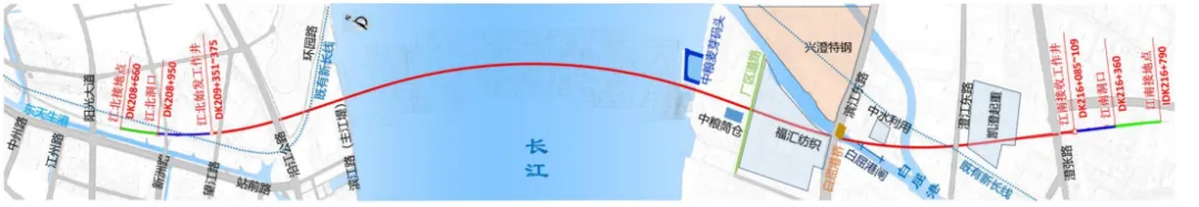 盐泰锡常宜铁路长江隧道位于盐泰锡常宜铁路中部,是盐泰锡常宜铁路全线贯通、发挥通道功能的关键区段。