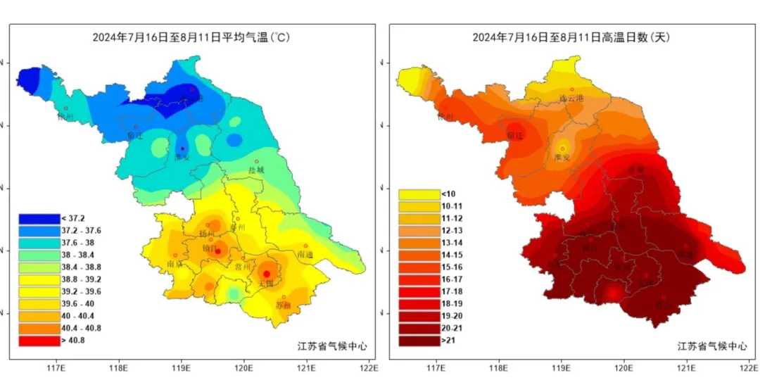 扬中(16天)等五站 连续高温日数刷新本站历史记录 江都(40.7℃,8月4日)日最高气温 刷新了本站有观测记录以来历史极值