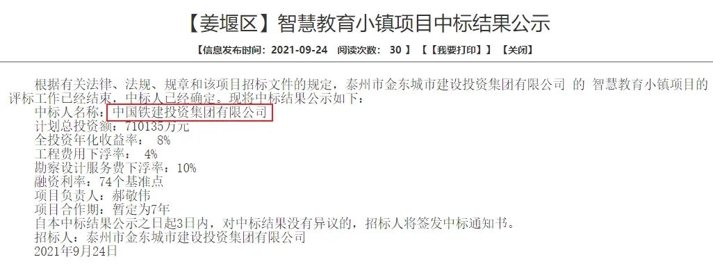 该项目由中国铁建投资集团有限公司中标。