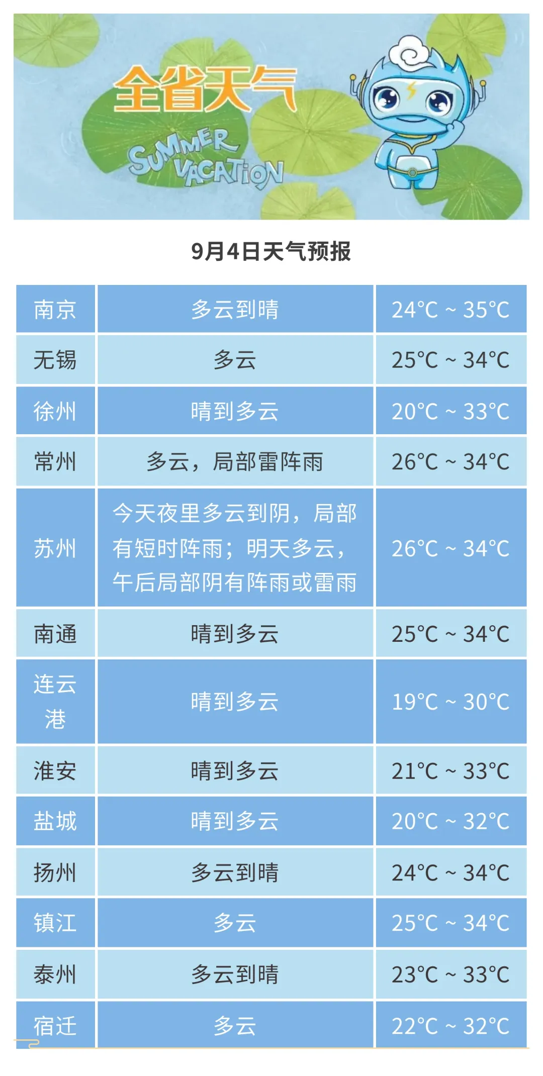 4日全省以多云天气为主 5-6日沿淮淮北地区阴有阵雨或雷雨