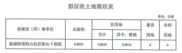 本次拟征收土地位于临城街道阳山社区阳山十四组范围内。拟征收土地位置详见附图。实际征收土地范围以最终批准文件为准。