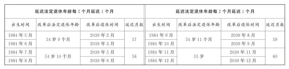 关于实施渐进式延迟法定退休年龄的决定明年起施行(此前报道→全国人大常委会关于实施渐进式延迟法定退休年龄的决定),年龄对照表公布↓