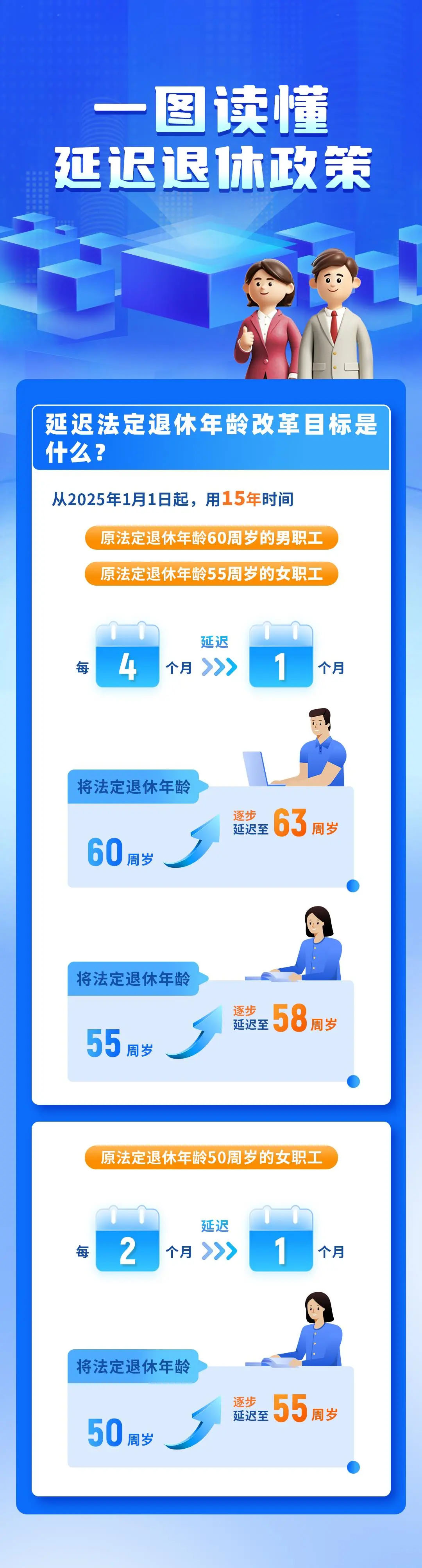 男、女职工的法定退休年龄怎样调整?哪些渠道可以查询本人对应的法定退休年龄?弹性延迟退休是怎么规定的?一组图读懂↓↓↓
