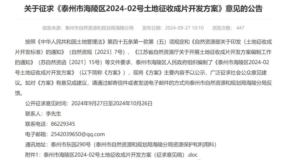 近日,泰州市海陵区2024-02号土地征收成片开发方案曝光,目前正在征求意见。本方案共包含3个片区,拟征收集体土地总面积约162公顷。