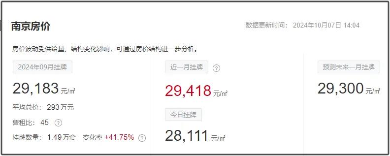 目前南京二手房均价29183元/㎡,挂牌均价最高的是鼓楼区为43304元/㎡,新增房源1.49万套。