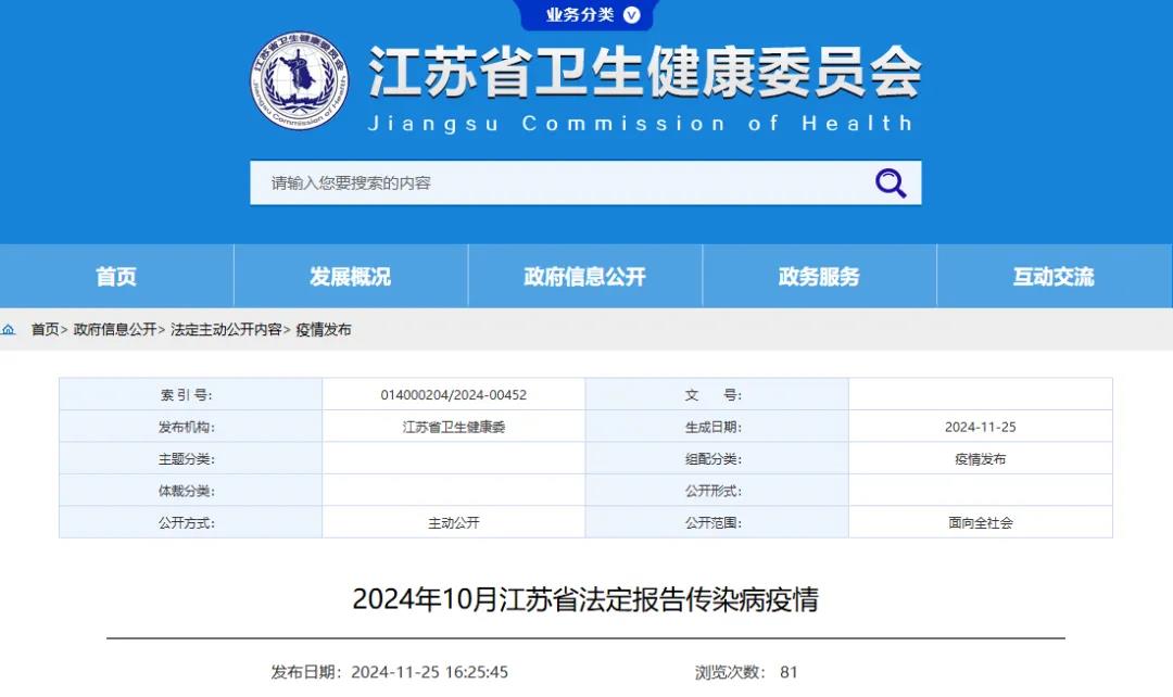 2024年10月江苏省法定传染病