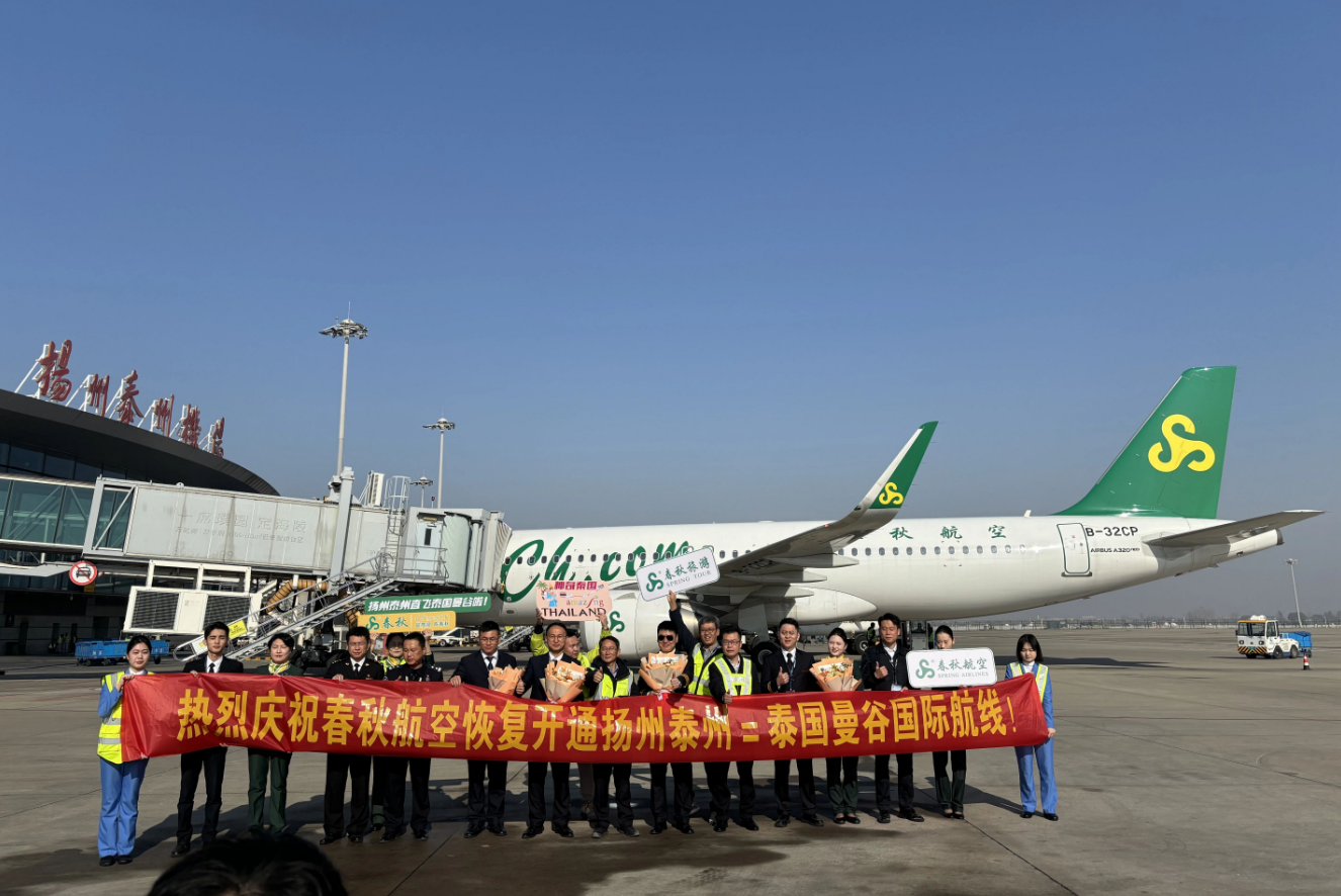 上海春秋旅行社有限公司扬州分公司负责人赵士可表示:“中泰两国从今年3月起永久互免对方公民签证,进一步提振了中国游客赴泰旅游的意愿,也大力推进了外国友人来华旅游的市场。本次航班的开通,拉进了扬州泰州和曼谷的直线距离,从扬州泰州国际机场出发,直线飞行时间4小时50分钟就能到达泰国首都曼谷,体验东南亚国家的历史文化和人文热情。值得一提的是,本次恢复的国际航线,从数据上来看2号的首班和4号的航班,客座率均达到100%。”
