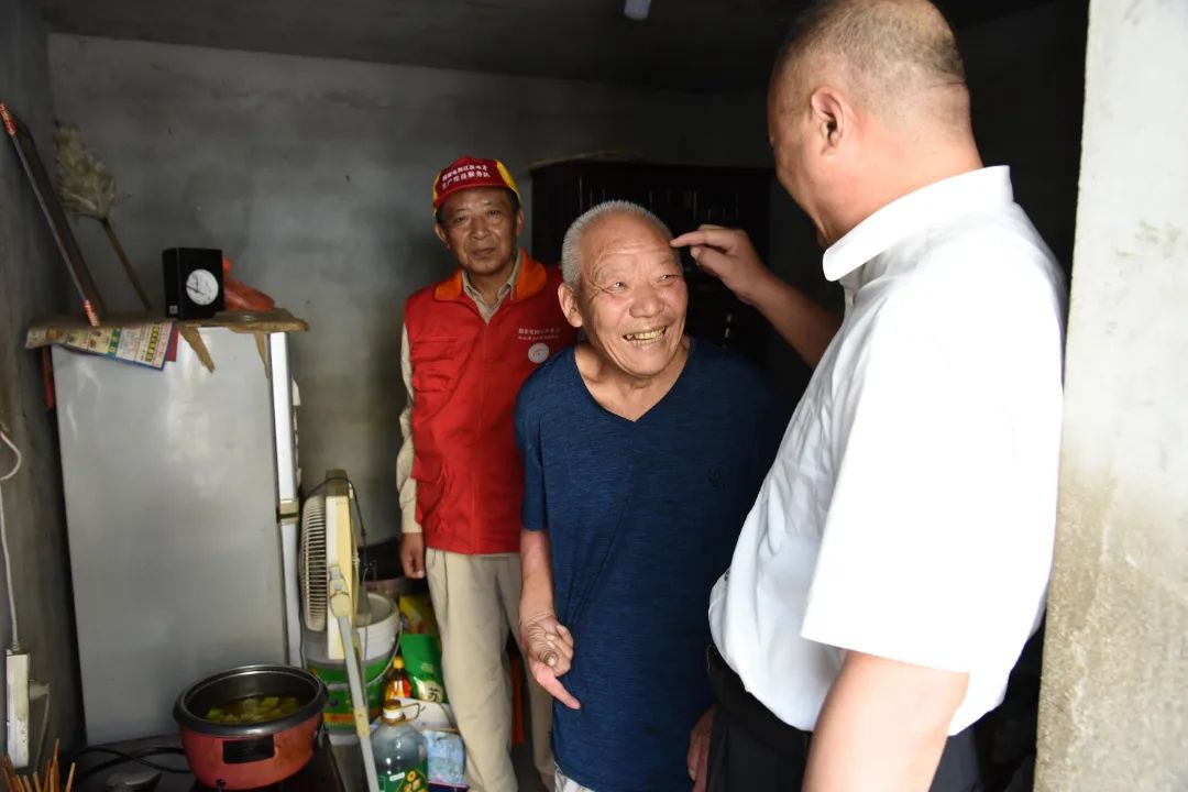 这不,快到中秋节了 周斌带着共产党员服务队的人 来看望石大爷了 还带了米、油等生活必需品 看到周斌 老人满脸的皱纹都绽开了花 拉着周斌唠叨 台区经理经常来看望他 还给他按政策进行了电费优惠 家里电路有个小毛小病的 立即给他修好了 “太感谢你们了, 这是中秋节我收到的最好的礼物!” 石大爷拉着周斌的手 久久不肯松
