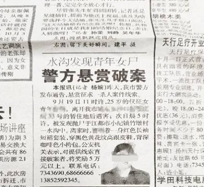 “吓死人了……吓死人了!”2002年9月20日清晨5点多,扬州江都小纪镇某村村民急匆匆地敲开了村民主任家的家门,“不得了,我在水渠里看到了一具女人的尸体,没穿衣服,头也被人砍掉了!”