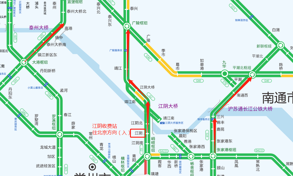 ①从G2京沪高速江阴收费站上高速,往北京方向行驶;