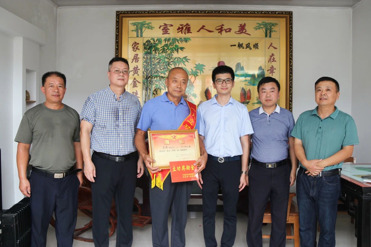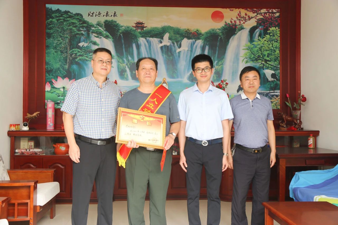 8月17日上午 兴化市退役军人事务局 来到戴南镇 为李佳丽、练乘风、黄卫林、朱天意 4名荣立三等功的现役军人家庭 送上立功喜报
