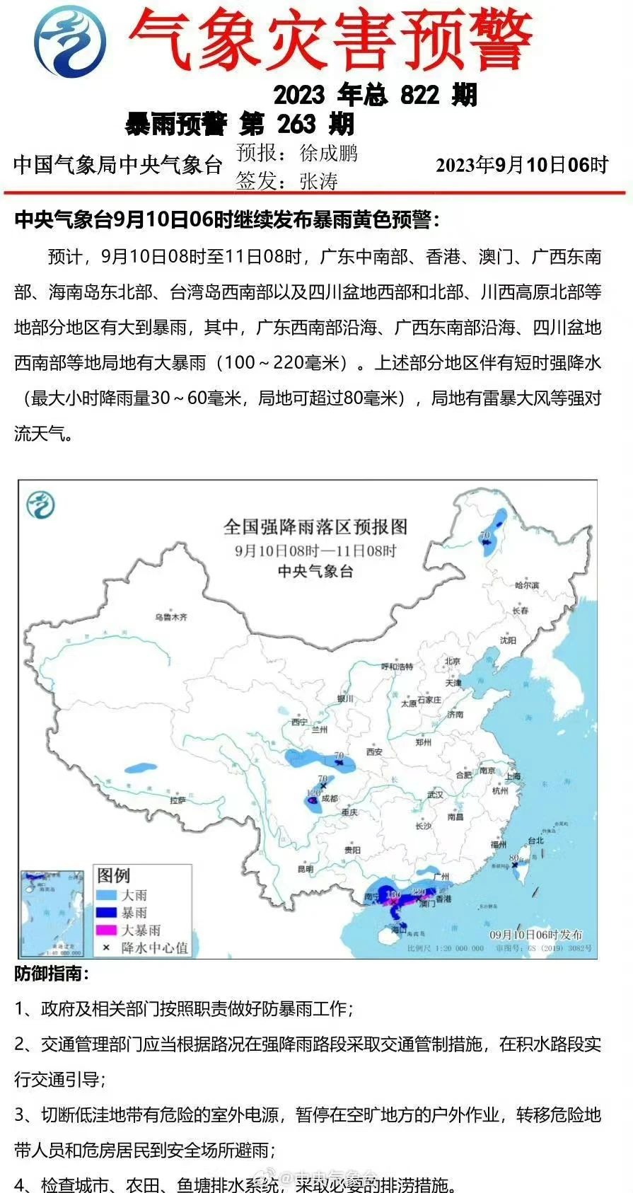 中央气象台9月10日06时