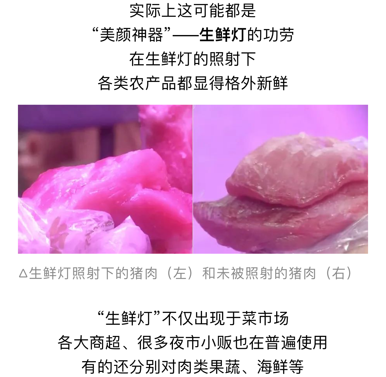 虽说办法规定实施时间为12月1日,姜堰不少商超和农贸市场已经开始提前实施了,姜堰人网走访城区的菜场和商超、发现市场内已少见“生鲜灯”的踪影,几乎全部被替换成了白炽灯等,让商品“素颜”回归。