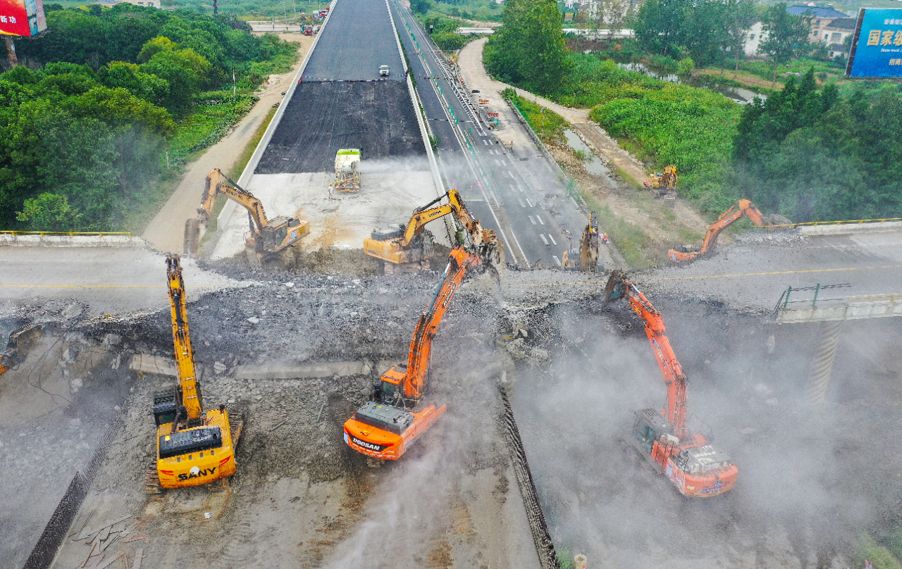 “跨线桥拆除后,我们加快229省道直线下穿沪陕高速工程建设,新改建长约是1公里,整个项目将持续25天,预计10月上旬S229省道将恢复通行。”
