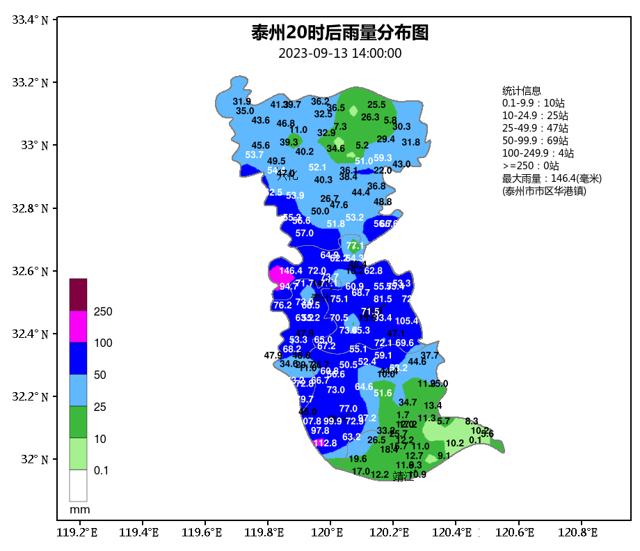 9月12日20时至13日14时,我市有73个站点降水量达到50毫米以上,最大降水量146.4毫米,出现在海陵华港镇站。今明两天将再迎一轮小雨天气过程,大家需适时添衣。