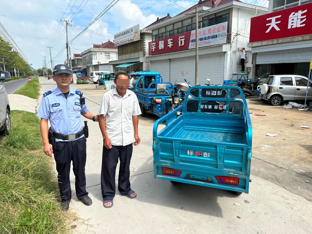 民警通过沿途30多个监控视频仔细比对,终于找到一张清晰图片,并锁定该电动三轮车出没于海陵区凤凰街道梅兴社区。民警通过走访摸排,最终确定肇事嫌疑人王某喜。