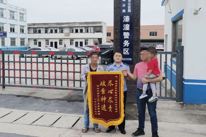 由于连续长途运输,对推进器造成一定程度损坏,嫌疑人张某家属积极赔偿王大爷的损失,争取谅解。经过近2个月的协商沟通,双方终于就赔偿事宜达成一致意见。9月21日,为了感谢警方快速破案、帮其挽回损失,王大爷一家专程来到派出所为办案民警送上锦旗,表达感激之情。