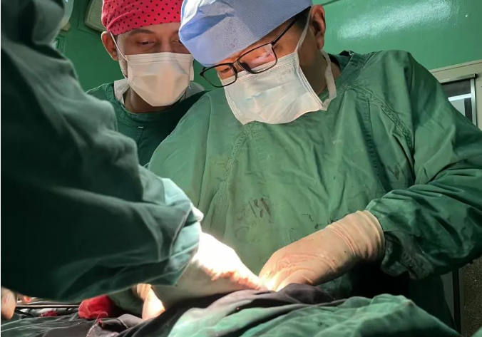 “肿瘤位于上腹部,肆意生长后把胃、肝挤在旮旯角,肝脏因为压迫也已经萎缩。”赵小军介绍,二次开腹,一个不慎还会引发大出血,手术难度非常大。团队顶住压力,绣花般一点一点剥离……终于成功了。切下来的肿瘤把大家惊呆了,直径达30厘米,有脸盆那么大。术后旁观的第三国医生也惊讶于中国医疗队的医疗技术水平,主动要求合影留念。患者家属更是对着中国医生连喊“Good”,感激之情溢于言表。