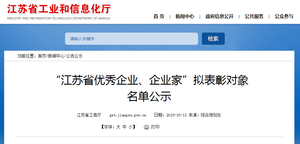 根据《省工业和信息化厅 省人力资源社会保障厅 省工商业联合会关于组织开展“江苏省优秀企业、企业家”评比表彰工作的通知》(苏工信综合〔2023〕379号),经地方推荐、资格初审、专家评审、领导小组审议等程序,现将“江苏省优秀企业、企业家”拟表彰对象名单予以公示,公示期为2023年10月12日—10月16日。公示期间如有异议,可通过以下电话反映,举报问题须实事求是。