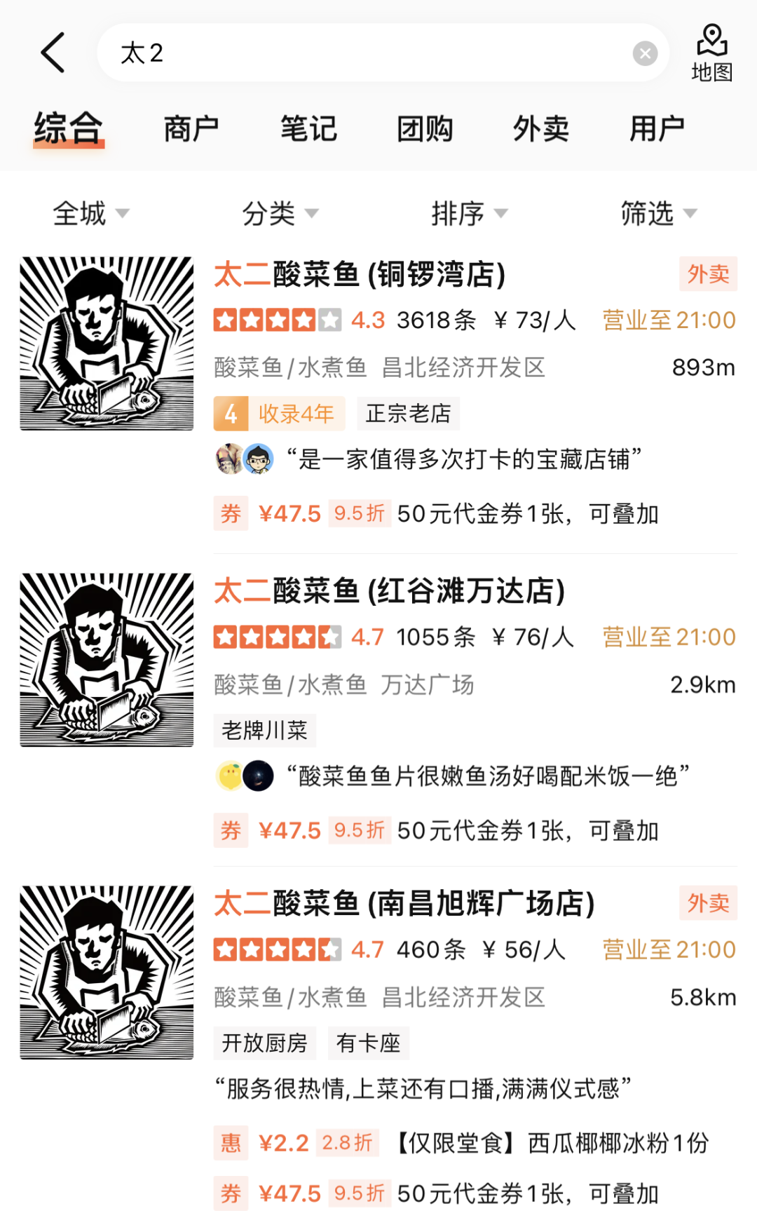 这不禁让人猜测,太二酸菜鱼“消失”在大众点评上一事是否与其入驻抖音、引发平台竞争有关?
