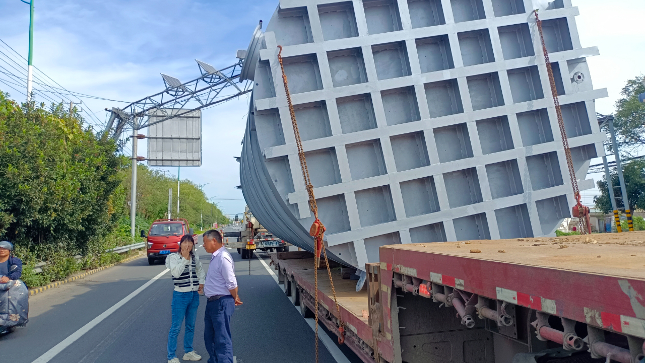 事故发生在27日12点21分左右,虽然不是交通高峰时间,可尽管如此,事故仍让这里的交通变得拥堵。这根限高杆立在328国道姜堰治超站门前。被刮断的限高杆,正巧落在圆形货物上方。圆形货物个头很高,而在限高杆上清楚注明了“限高5米”,显然,货车车厢已超过了这个高度。