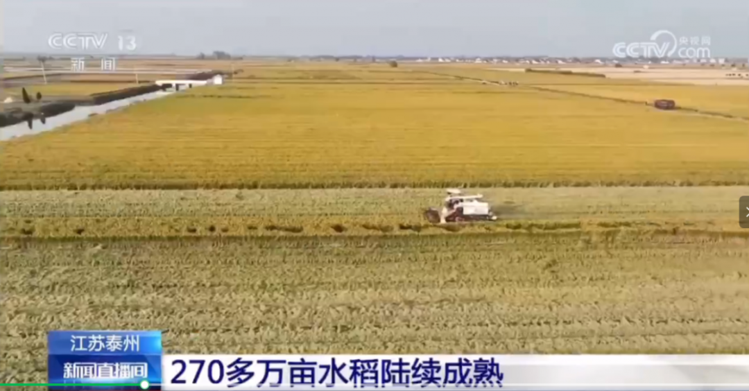 目前全国秋收接近尾声,眼下江苏泰州270多万亩水稻陆续成熟,泰州组织了9000台收割机收割水稻,预计11月中旬完成收割。