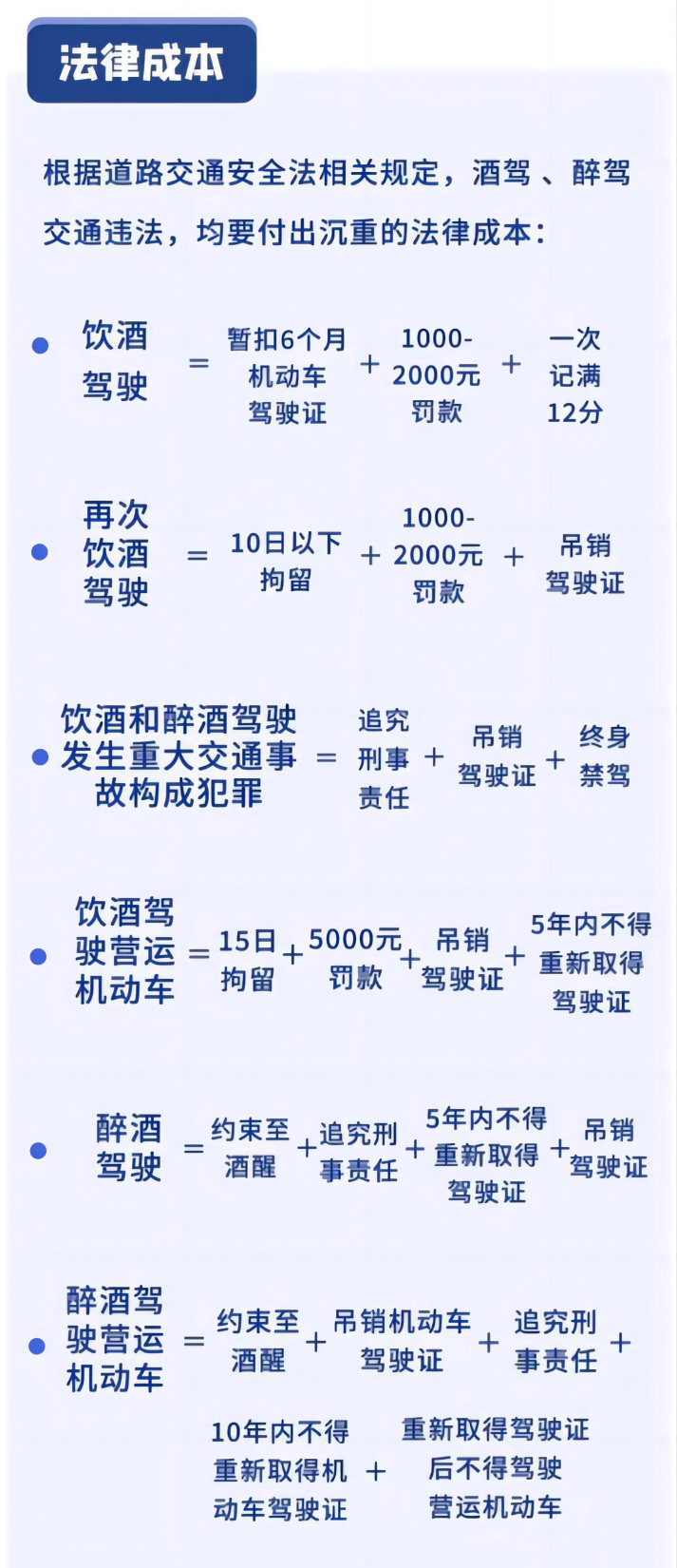 在此 提醒广大驾驶人员 酒后开车不可取 不要抱有侥幸心理 否则 你还将面临高昂的 “违法成本账单”