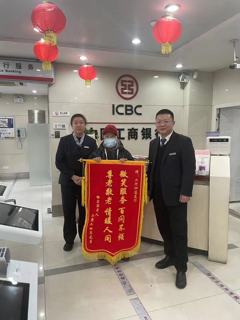 “微笑服务百问不烦 尊老敬老情暖人间”这是2024年元月就已制作好的一面锦旗,2月初一位哈尔滨老人送给沁莲支行一面致谢锦旗,这面情真意切的锦旗是对工行泰州新区沁莲支行长期以来的服务态度、专业能力的由衷赞美,更是对沁莲支行尊老敬老服务的高度认可。