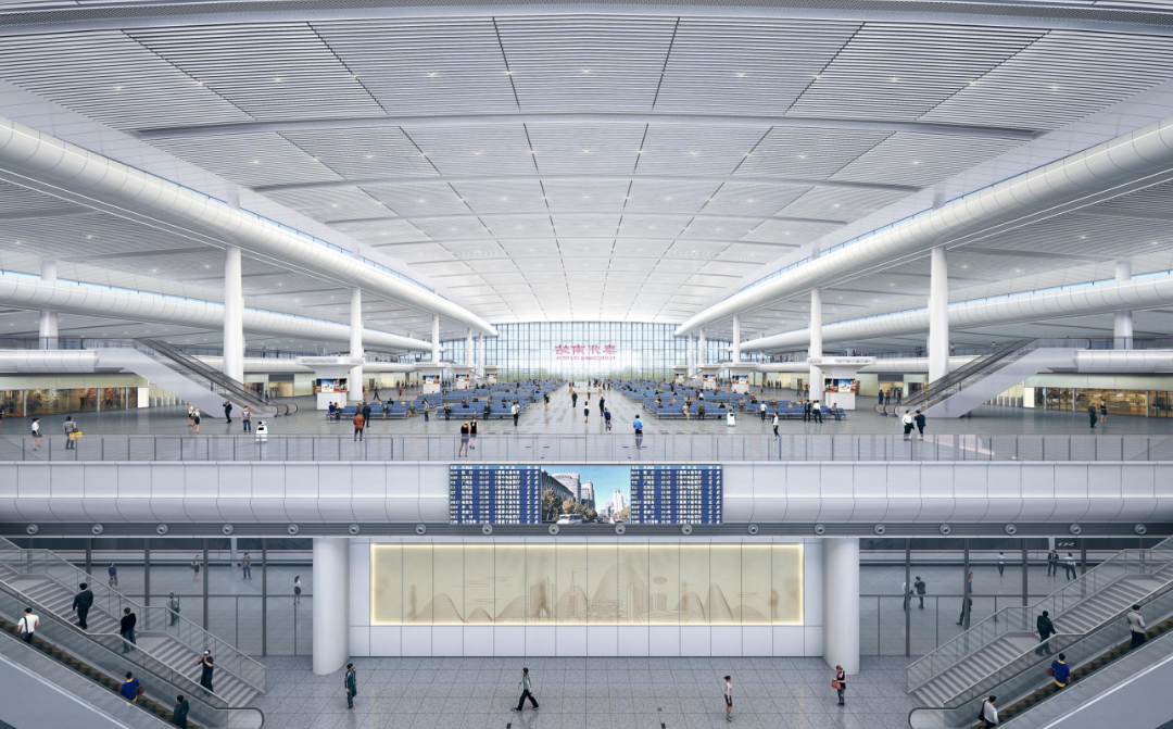 高铁泰州南站站房,位于医药高新区(高港区)白马镇,是重点控制性工程。站房规模为40000㎡,车场规模6台15线。