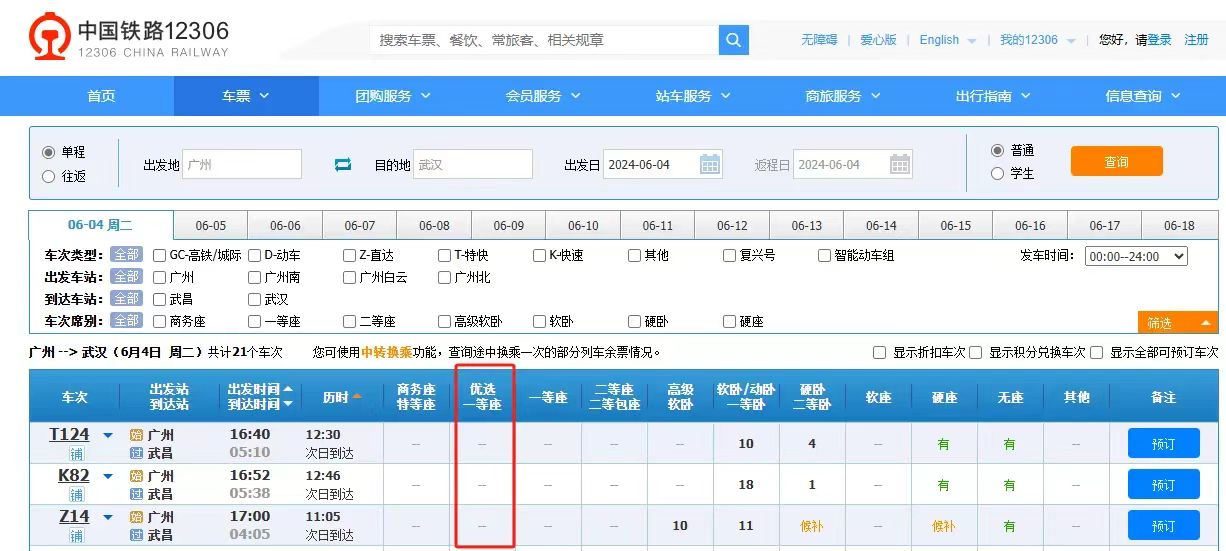 近日,有网友发帖称,国铁12306官网出现了一种全新坐席,名为“优选一等座”,不少网友好奇这个“优选一等座”到底有什么独特之处。