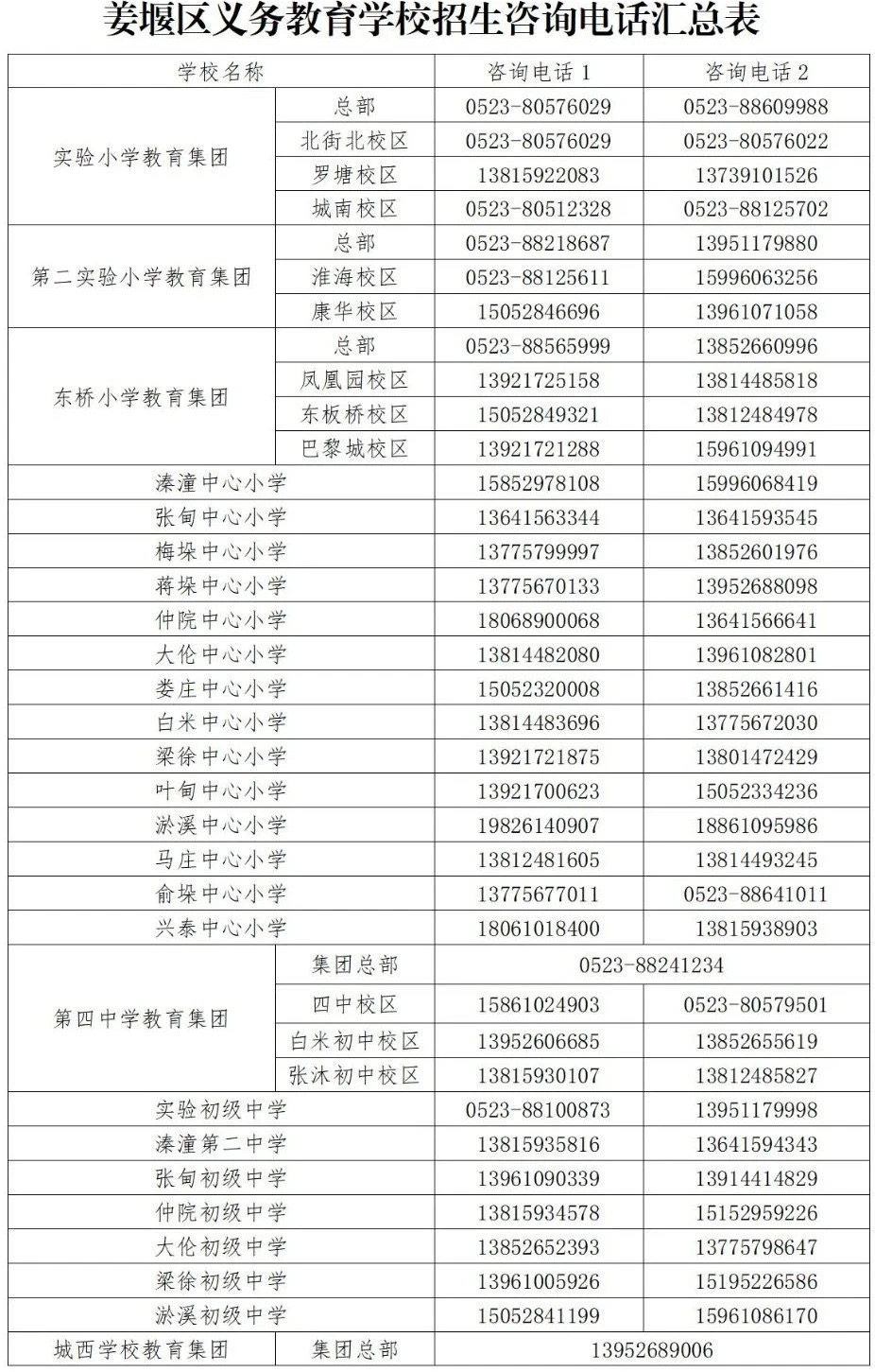 (2)优化:桥头小学和桥头初中(城西学校教育集团)、王石小学和王石初中(南苑学校教育集团)、张沐初中(第四中学教育集团),5所农村学校原招生区域可与城区集团校区共享;溱潼中心小学施教区扩至溱潼镇全境;原梅垛乡招生区域作为张甸中心小学与梅垛中心小学共有施教区。