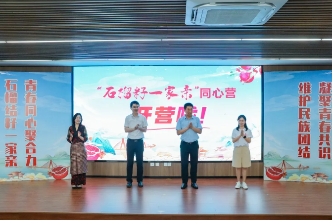 泰州市民宗局副局长吴杰、泰州团市委副书记周锦坤、黔南州民宗委一级主任科员吴倩、曲水团县委四级主任科员次仁玉珍,共同开启“石榴籽一家亲”同心营。