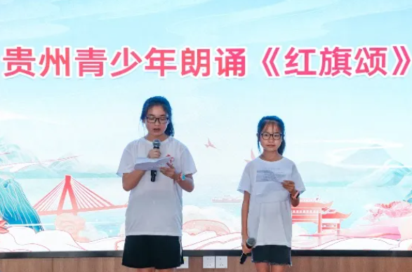 贵州省黔南州的各族青少年带来了精彩的集体操表演《大梦想家》和朗诵《红旗颂》。