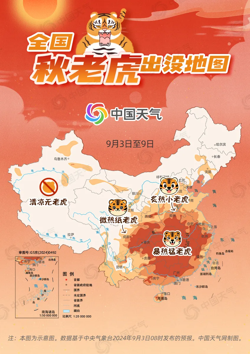 全国秋老虎出没地图可以看出