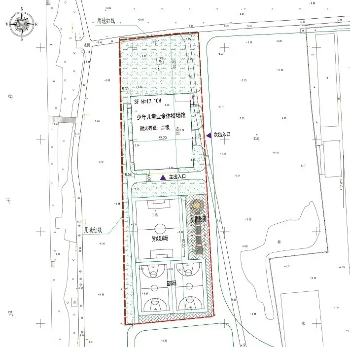 本次拟建少年儿童业余体校场馆一座,共三层,一层为跆拳道馆、运动员小餐厅、厨房操作间,二层为大餐厅,三层为室内运动场(篮球场、羽毛球场、排球场)、运动员淋浴房、运动员自习室、卫生间等。