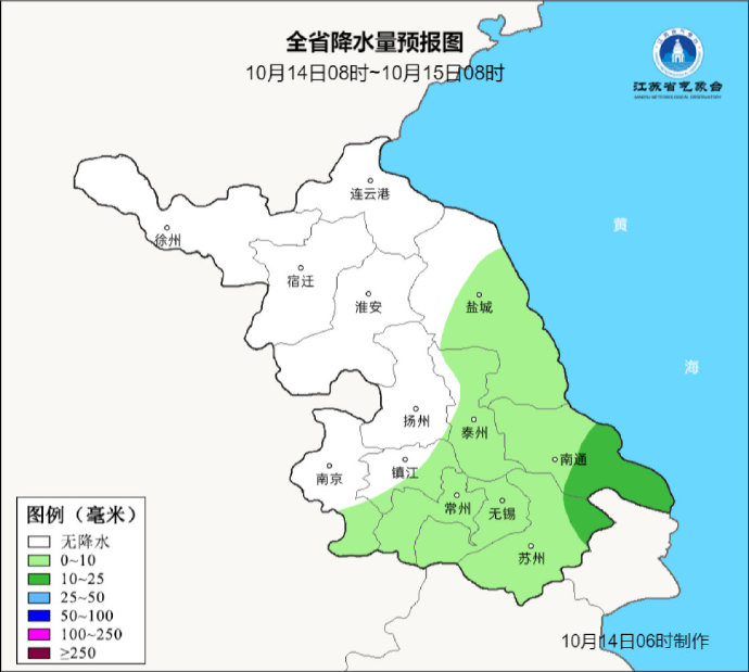 苏南大部分地区有阵雨