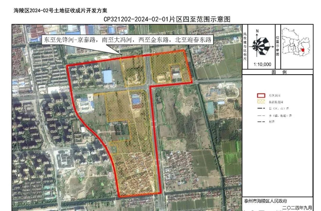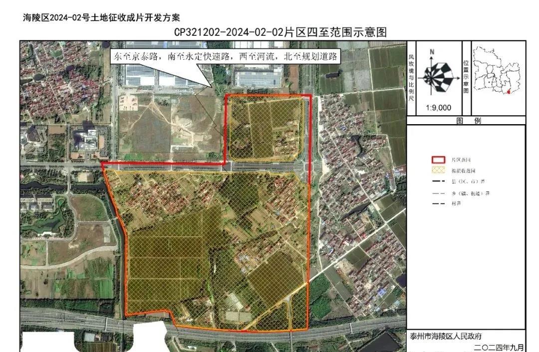 近日,泰州市海陵区2024-02号土地征收成片开发方案曝光,目前正在征求意见。本方案共包含3个片区,拟征收集体土地总面积约162公顷。