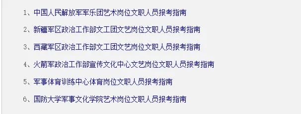 各单位具体报名截止时间 1.中国人民解放军军乐团艺术岗位:2024年10月31日18:00时截止。 2.新疆军区政治工作部文工团文艺岗位:11月3日22时截止。 3.西藏军区政治工作部文工团文艺岗位:10月31日22时截止,通过网上进行报名。 4.火箭军政治工作部宣传文化中心文艺岗位初审材料以压缩包的格式,按照“XX岗位+姓名”命名,请于2024年10月30日12:00前提交。 5.军事体育训练中心体育岗位:10月30日17:00截止。 6.国防大学军事文化学院艺术岗位:2024年10月31日截止。