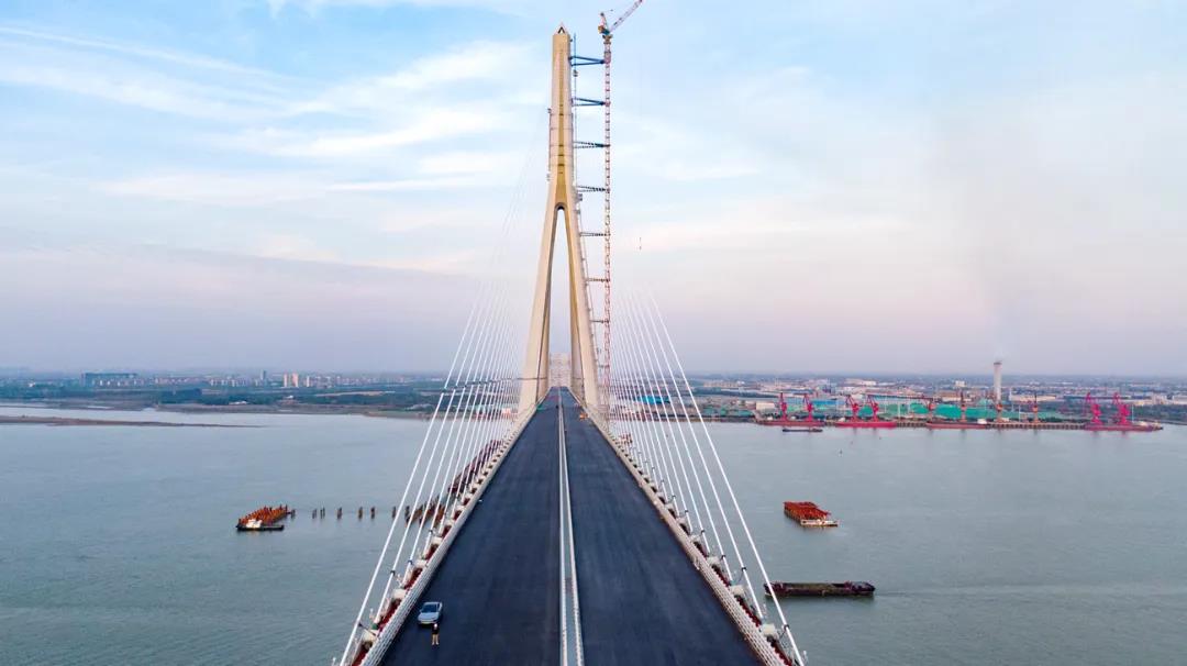 常泰长江大桥是长江上首座集高速公路、城际铁路、普通公路三种方式于一体的过江通道,全长10.03公里,其中双层连续钢桁梁长度达到4266米。上下层钢桥面铺装总面积超25万平方米,相当于33个标准足球场,平均铺装厚度在6-6.8厘米间。