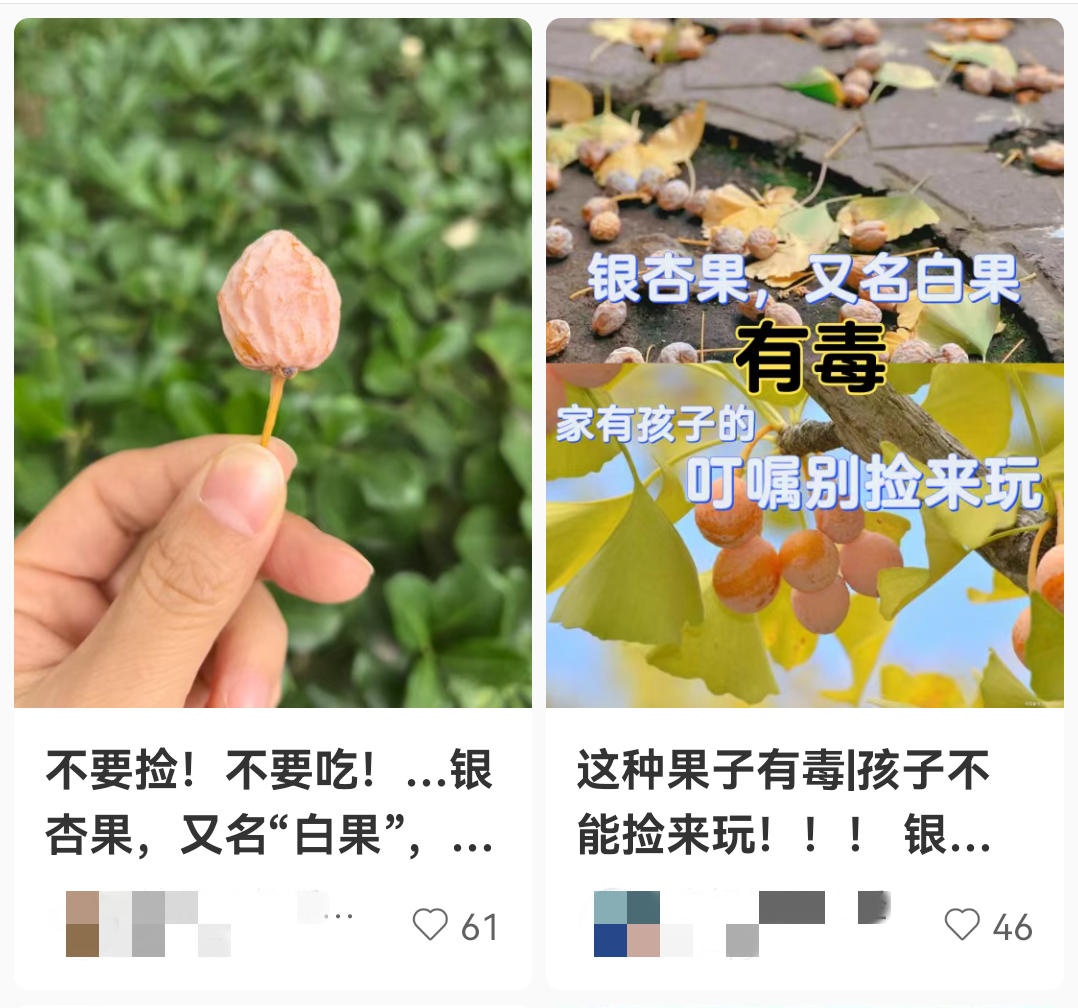 除了银杏果本身存在的毒素外,马路边捡来的银杏果还会受到烟尘、汽车尾气等有害物质的污染,再加上银杏树常年被施以药物防病虫害,因此路边的白果不能采,更不能吃,一定要远离。