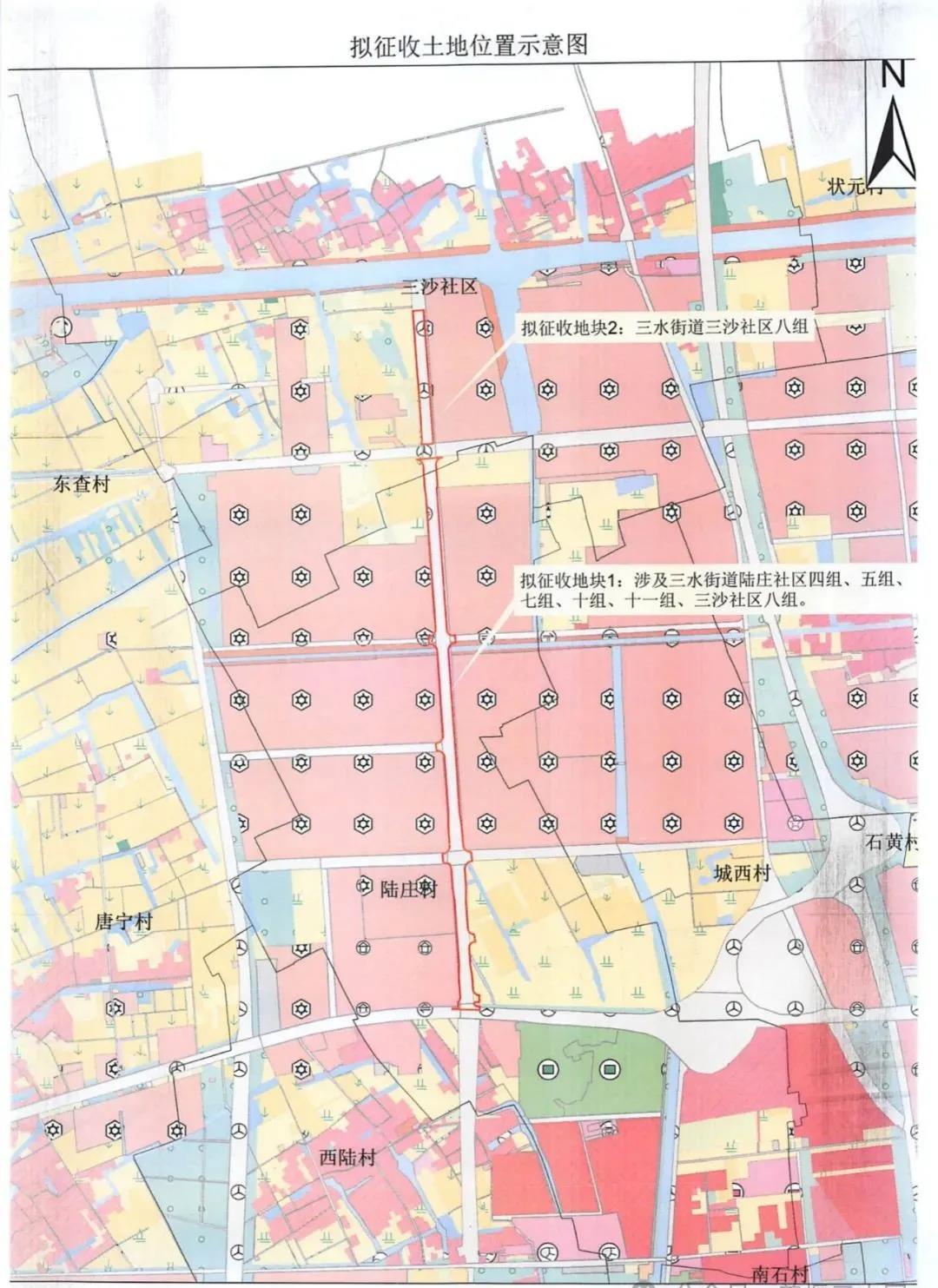 本次拟征收的土地位于三水街道陆庄社区四组、五组、七组、十组、十一组、三沙社区八组范围内。拟征收土地面积8.9366公顷,拟征收土地位置详见附图。实际征收土地范围以最终批准文件为准。