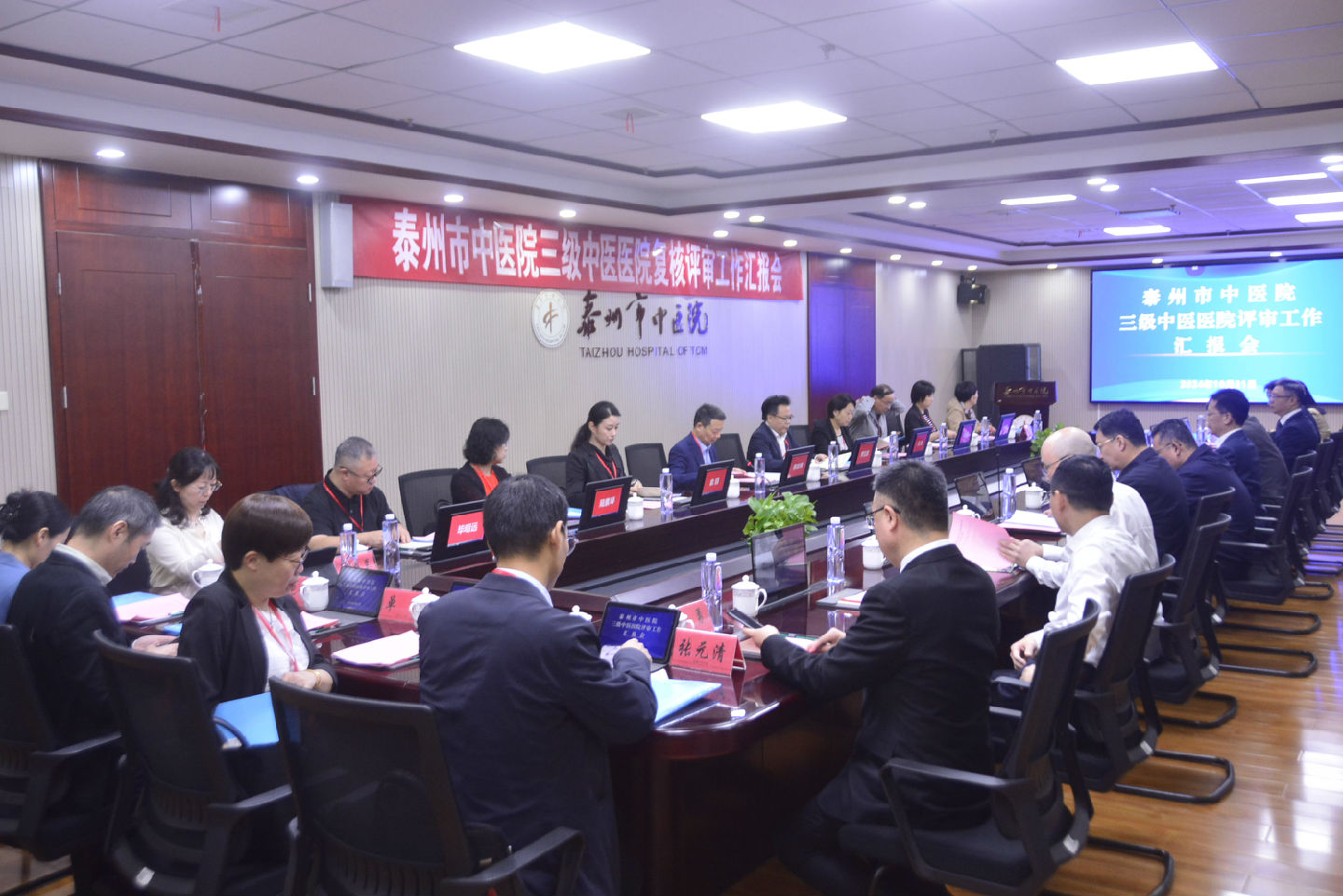 21日上午,三级中医医院复评汇报会在泰州市中医院举行。泰州市人民政府副秘书长牛世杰,泰州市卫生健康委党组书记、主任全冬明,市卫健委二级调研员翟德祥,中医医政处二级主任科员张华乐出席汇报会。院领导班子成员及部分职能科室负责同志参加会议。评审专家组组长黄亚博主持会议。
