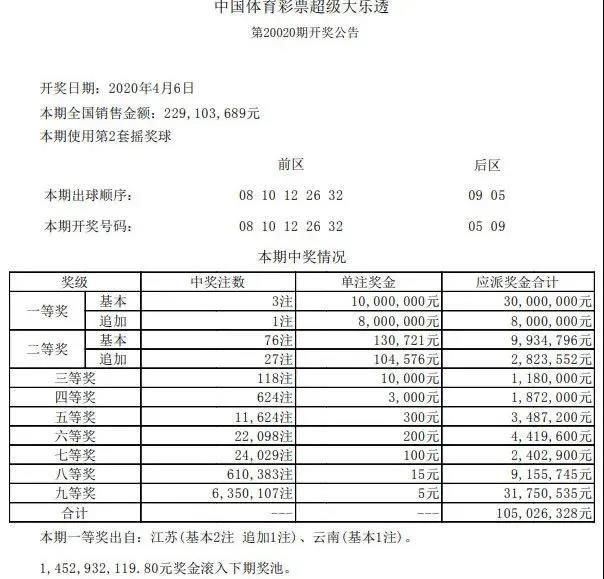 昨晚8点半,体彩大乐透第20020期开奖,本期全国共中出3注一等奖,其中1注为1000万元基本投注一等奖,花落泰州兴化,中奖彩票为一张5注10元投注的单式票。