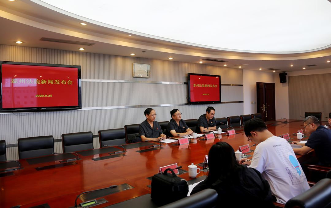 9月25日上午,泰州市中级人民法院联合泰州医药高新区法院召开“涉企案件”新闻发布会。新华日报、人民数字、泰州电视台、泰州日报、***、太灵通等多家媒体记者应邀参加。市中院新闻处负责人于波主持发布会。