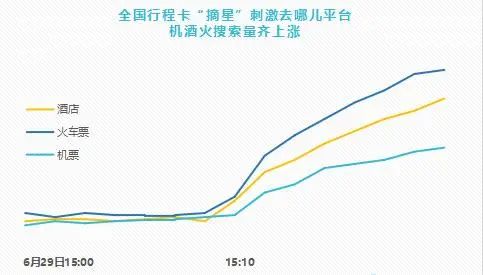 据去哪儿平台数据,消息发布半小时后,平台上国际机票瞬时搜索量翻倍,达到近两年以来该平台国际机票搜索量最高峰。同时,平台机票搜索量在30分钟内上升60%,酒店搜索量翻番,火车票搜索量上涨最多达到1.5倍;消息发布一小时左右,去哪儿平台机票搜索量已经上涨2倍。同程旅行大数据显示,消息发布半小时内,平台机票搜索量较前日同一时段上涨180%,酒店搜索量较前日同一时段上涨220%。