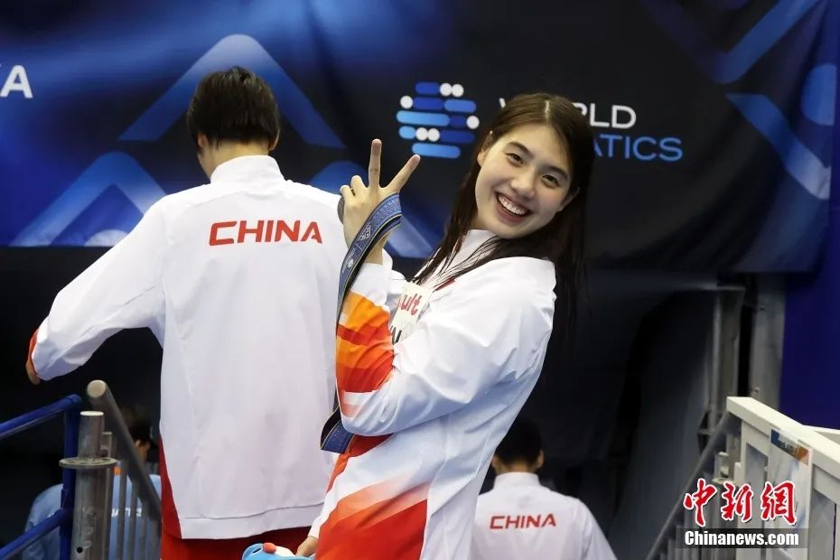 资料图:张雨霏世锦赛夺冠后庆祝胜利。中新社记者 汤彦俊 摄
