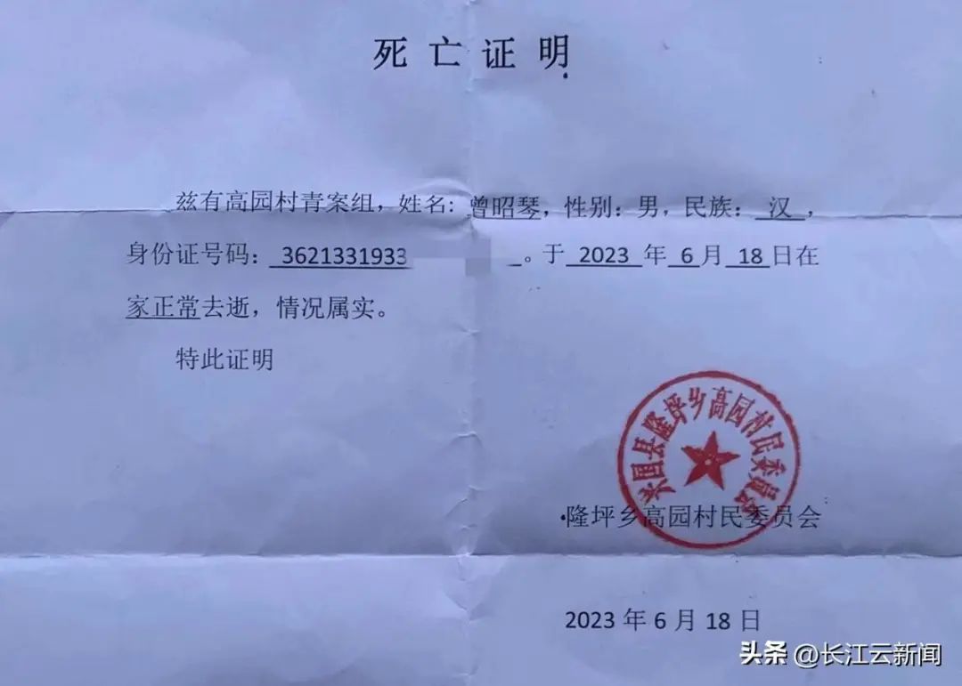 “您好,是曾昭琴老人的家属吗?请速来乡卫生院一趟!”6月18日父亲节当天下午3点多,江西省赣州市兴国县隆坪乡高园村的村民曾宪财,突然接到乡卫生院紧急电话通知,他90岁的老父亲曾昭琴在路边摔倒后被送到了乡卫生院。等一众家属赶到时,曾昭琴已被宣告死亡。