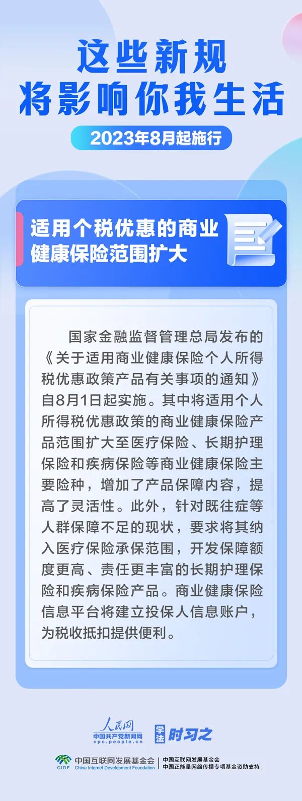 促进生成式人工智能健康发展扩大适用个税优惠政策的商业健康保险产品范围明确经营性人力资源服务机构不得向个人收取押金……8月,这些新规施行将影响你我生活