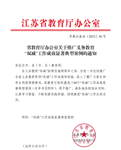 近日省教育厅办公室印发了关于推广义务教育 “双减”工作成效显著典型案例的通知我市有4个上榜一起看看吧